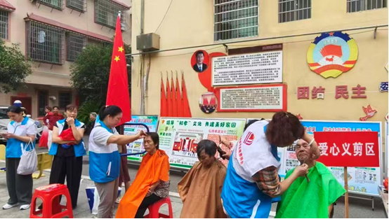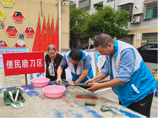祁阳新闻网9月29日讯(通讯员祁阳市委社会工作部)9月29日上午,祁阳市新兴路社区谢家园二小区活动中心人头攒动。舞台上,文艺表演者们正深情演唱《爱我中华》;“爱心义剪”摊位前,身穿红马甲的志愿者们正在为几位老人理发;“便民磨刀”服务处,居民们正拿着用钝的菜刀排队等候;知识宣讲区,工作人员们正耐心地向居民讲解安全用电、反电诈、防性侵、禁毒、垃圾分类等知识。
