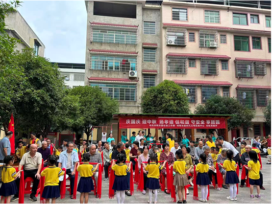 此番热闹的景象正是祁阳市委社会工作部、祁阳市新时代文明实践中心、长虹街道办事处联合举办在新兴路社区开展的“庆国庆·迎中秋”双节庆典暨传承“和孝”文化主题活动现场。